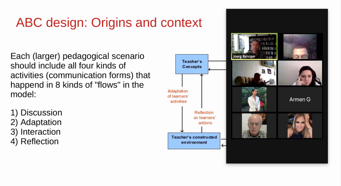 Professor Jörg Balsiger introduced ABC Learning Design which is a highly successful curriculum development approach conceived at University College London in 2014. The approach is designed to allow teaching teams to design a course in just 90 minutes by means of a structured approach using specialized tools and a visual storyboard; it can also be used to review and modify an existing course or to plan a change into an online course.
